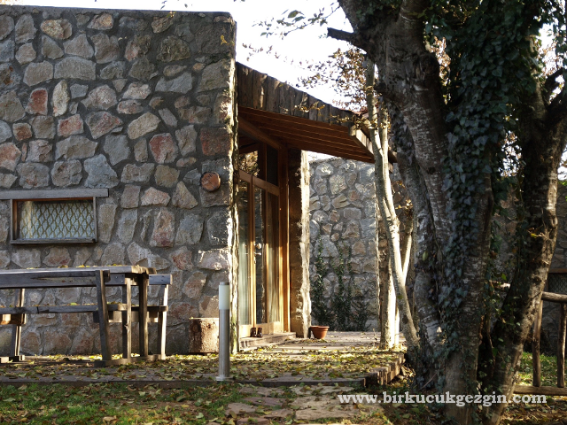 Hindiba Pansiyon’un doğa ile bütünleşmiş ahşap ve taş evleri insana kendini gerçekten şehirden uzaklaştığını hissettiriyor.