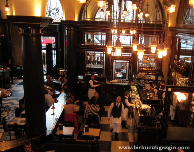 Son günümüzün sabah kahvaltısını hem arkadaşlarımızdan hem de internet forumlarından özellikle brunch için çok methini duyduğumuz The Wolseley’de yaptık. Burası tarihi bir binada, yüksek tavanlı çok şık bir restoran. Ben yumurta yemediğim için kahvaltı seçenekleri benim için sınırlıydı. Kruvasanlar ise harikaydı. Yemeklerin lezzeti bir yana, böyle bir ortamda soylular gibi gümüş takımlarla kahvaltı yapmak İngiltere’de yaşanması gereken bir deneyim bence. Çıkışta kapısında Kate Moss’u gördüğümüzü de belirtmeden geçemeyeceğim.
