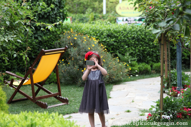 Kahvaltı olarak gayet doyurucu ve lezzetli fiks bir kahvaltı tabağı ve yumurta/omlet çeşitleri verdiler. Arkadaşım, bebeğinin süt alerjisi olduğu için sadece omlet almak istedi ve durumu açıklamasına rağmen kabul etmediler. Bu da aslında bence biraz sinir bozucuydu ama keyfimizi kaçırmadık ve görmezden geldik. Kahvaltıdan sonra da şezlonglarda takıldık. Küçük Gezgin biraz parkta oynadı, biraz da babasıyla fotoğrafçılık peşine düştü.