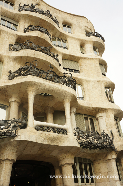 Plaza Catalunya’dan yolumuza bu kez de şık mağazaları ile ünlü Passeig de Gracia caddesi üzerinde yürüyerek devam ettik. Zaten Barselona’da mutlaka görülmesi gereken yerlerden olan Gaudi’nin iki eseri, Casa Batllo ve Casa Mila (La Pedrera) da bu cadde üzerinde. ‘Casa’ İspanyolca ev anlamına geliyor. Her iki yapı da konut olarak içi ve dışı Gaudi tarafından tasarlanan çok katlı binalar. Gitmeden önceki araştırmalarıma göre Casa Mila’nın içini gezmek daha cazip geldi bana. Hem zamandan tasarruf etmiş olduk hem de iki kişi her birine 40EUR vermek biraz fazla geldi bize.