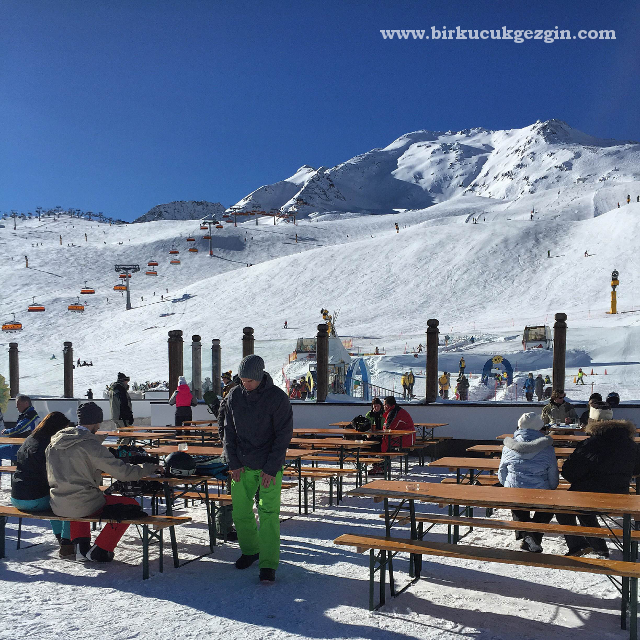 Giggijoch Gondolunun tepesindeki kayak okullarının da yanındaki restoranı terası. Hava güneşli olunca çok keyifli…