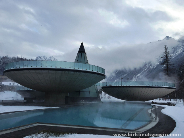 Aqua Dome, farklı konseptlerde hazırlanmış çeşitli sauna, buhar odası ve bakım merkezleri, restoranı, açık ve kapalı havuzları, çocuklar için ayrı havuzu ve oyun odası ve kaydıraklı havuzları ile dört dörtlük bir spa merkezi ama bence tek cazip ve eşsiz özelliği, Alp dağlarının yamacındaki ve ormanın içindeki açık termal havuzları! Böyle muhteşem bir deneyim olamaz. Üşümüyorsunuz ama buzzz gibi havayı hissediyorsunuz ve o sırada ciğerleriniz bol oksijenle doluyor. Dev çanak şeklindeki havuzların kenarında oturuyor ve manzarada kendinizi kaybediyorsunuz. Yüzünüzde sürekli gülümser bir ifade oluyor…