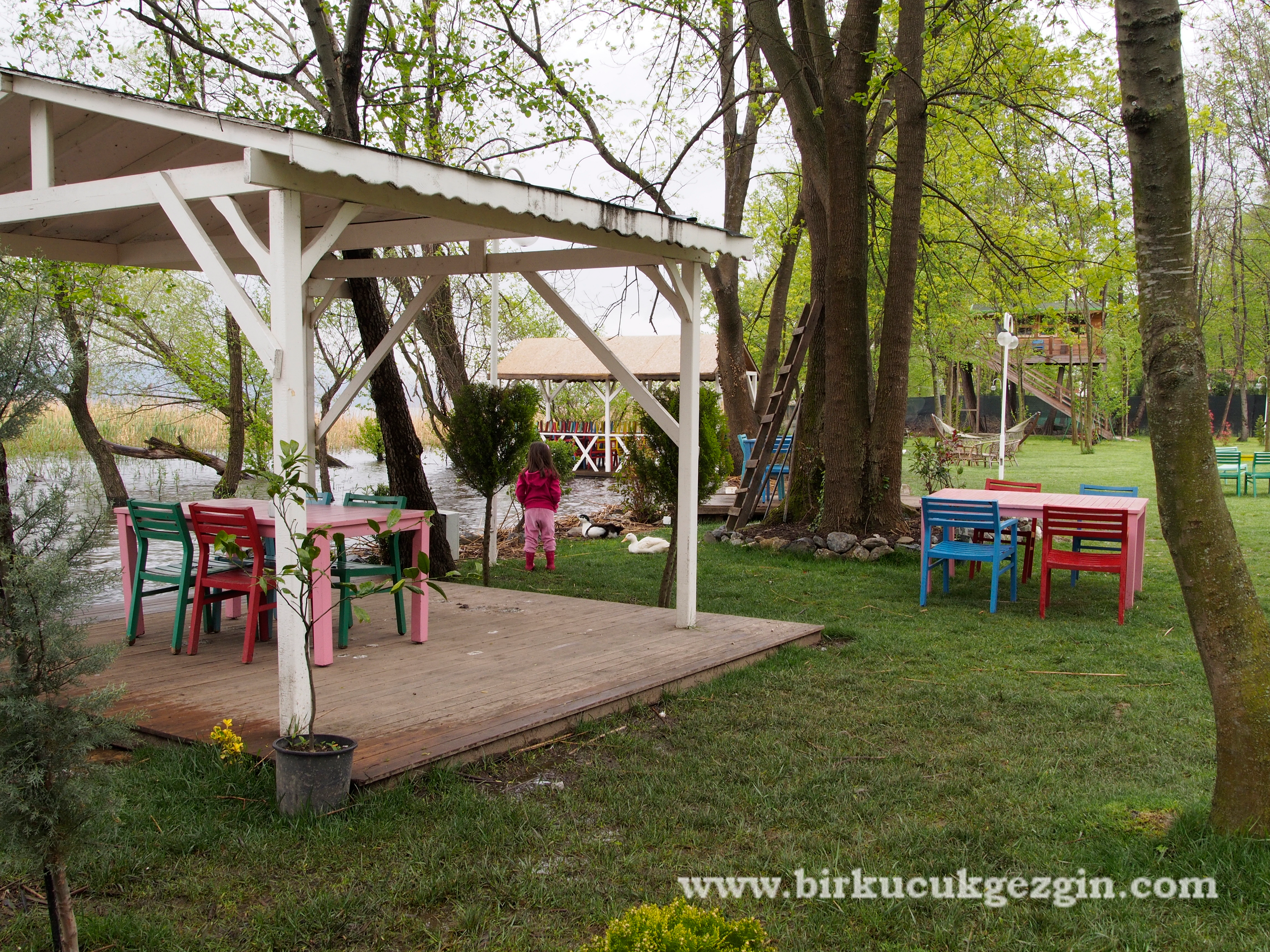 Gittiğimiz gün otele yerleşmeden önce doğru gölün yolunu tuttuk ve gölün kenarındaki işletmelerden biri olan ve benim internet araştırmalarım sonucunda seçtiğim İskele Kafe ve Restoran‘a gittik. Google’da yeri gözükmüyor, ayrıca haritada “sahil yolu” diye görünen yol aslında tek aracın geçmesine müsait bir köy yolu olduğu için ve demiryolu üzerinden geçiliyormuş gibi gözüken bir yol aslında var olmadığı için biraz dolaşsak da İskele Restoran’ı bulabildik.