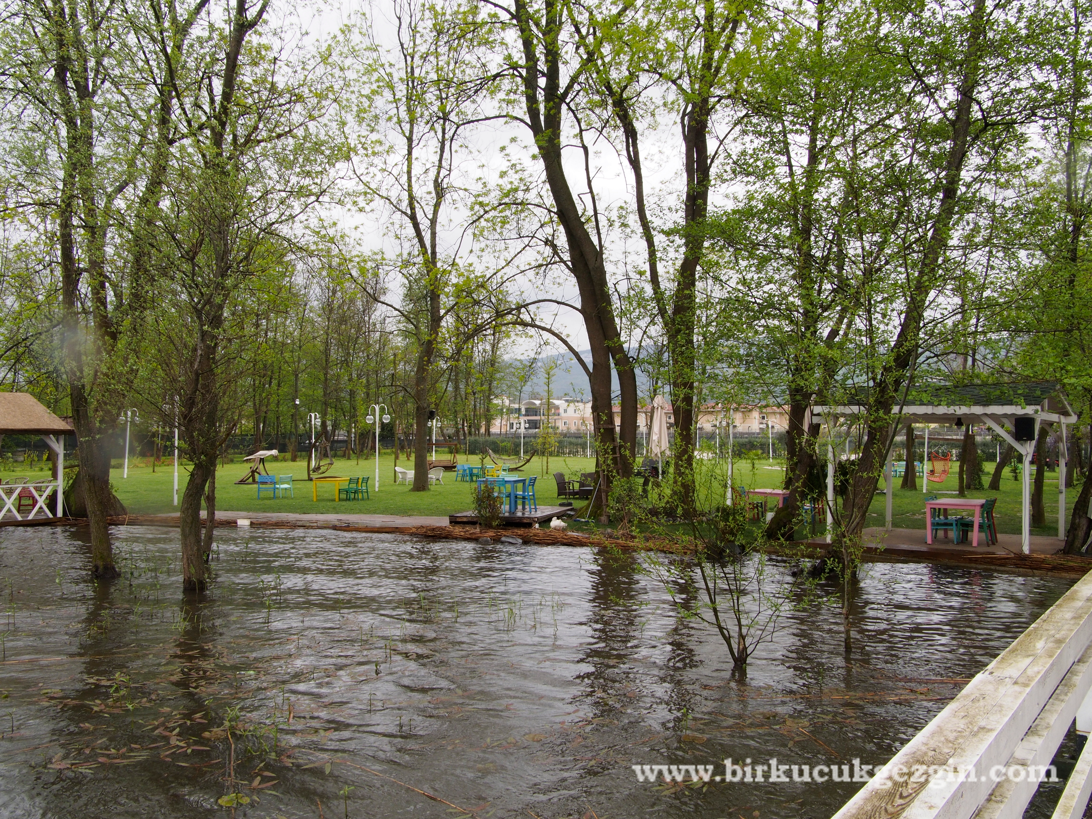 Bahçesi de çok güzel ve bakımlı. Ayrıca çocuk parkı ve kışın yemek yiyebileceğiniz göle sıfır, sera şeklinde kapalı bir bölümü de var.