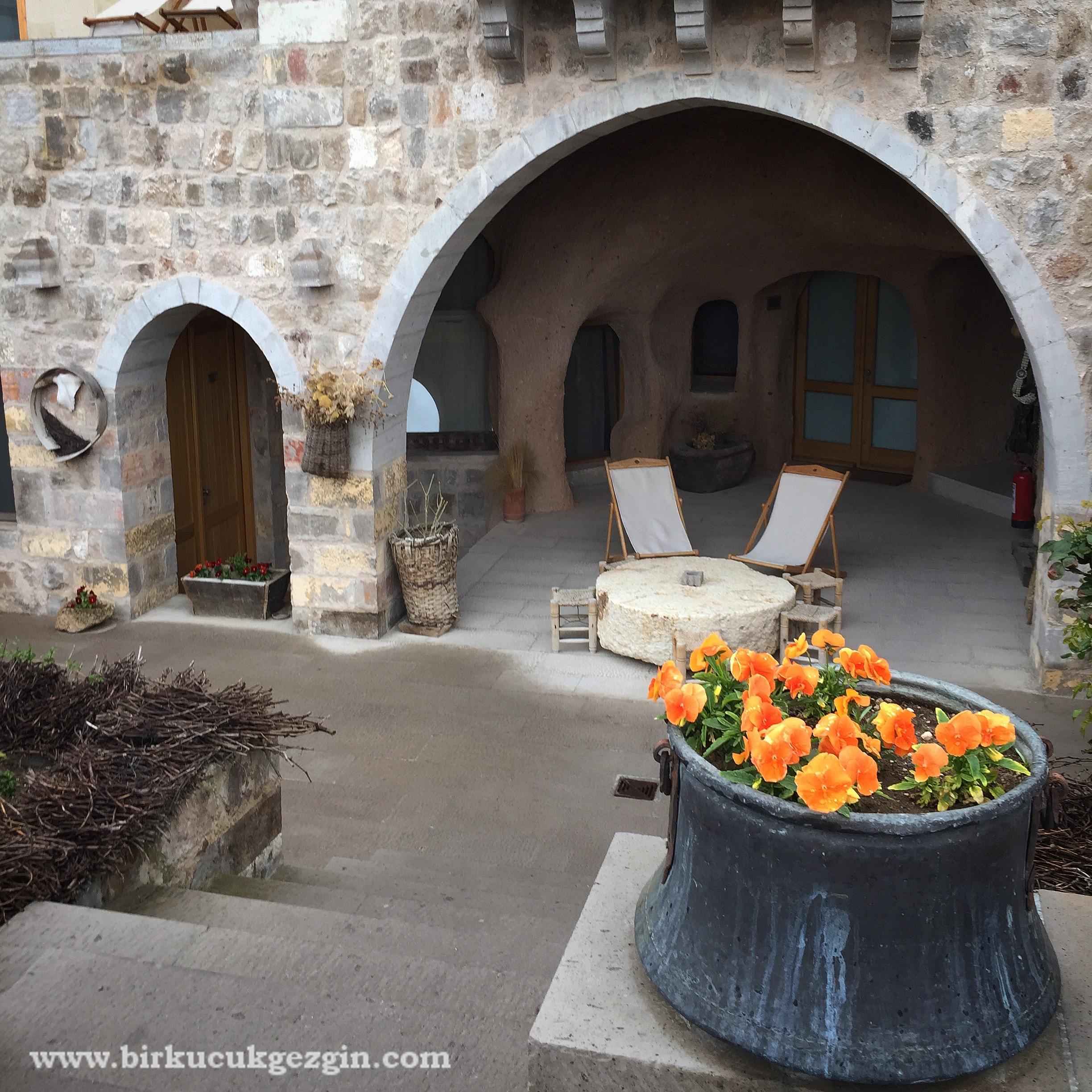 Araştırmalarım sonucunda konaklamak için en ideal yerin Uçhisar olduğuna karar vermiştim ve Uçhisar’da da seçimimiz Argos in Cappadocia‘dan yana oldu ve bu butik ve şirin otelden inanılmaz memnun kaldık. Uçhisar’da yerleşim zaten Uçhisar Kalesi’nin etrafında ve yamaçta teras evler şeklinde. Argos in Cappadocia da burada bir mahallenin otele dönüştürülmüş hali. Tarihi yapılara ve dokuya hiç zarar vermeden kurulmuş.