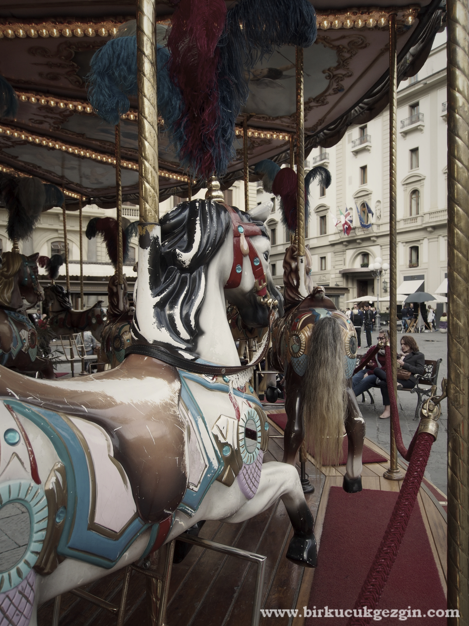 Çocuklarla gezi rotamızdaki durak noktalarımızdan bir tanesi de Repubblica Meydanı idi. Yine çok hareketli bir meydan olan Repubblica’nın bizim için iki önemli özelliği vardı. Birincisi tarihi atlı karınca, ki tabii ki çocuklar hemen bir kaç tur attılar.