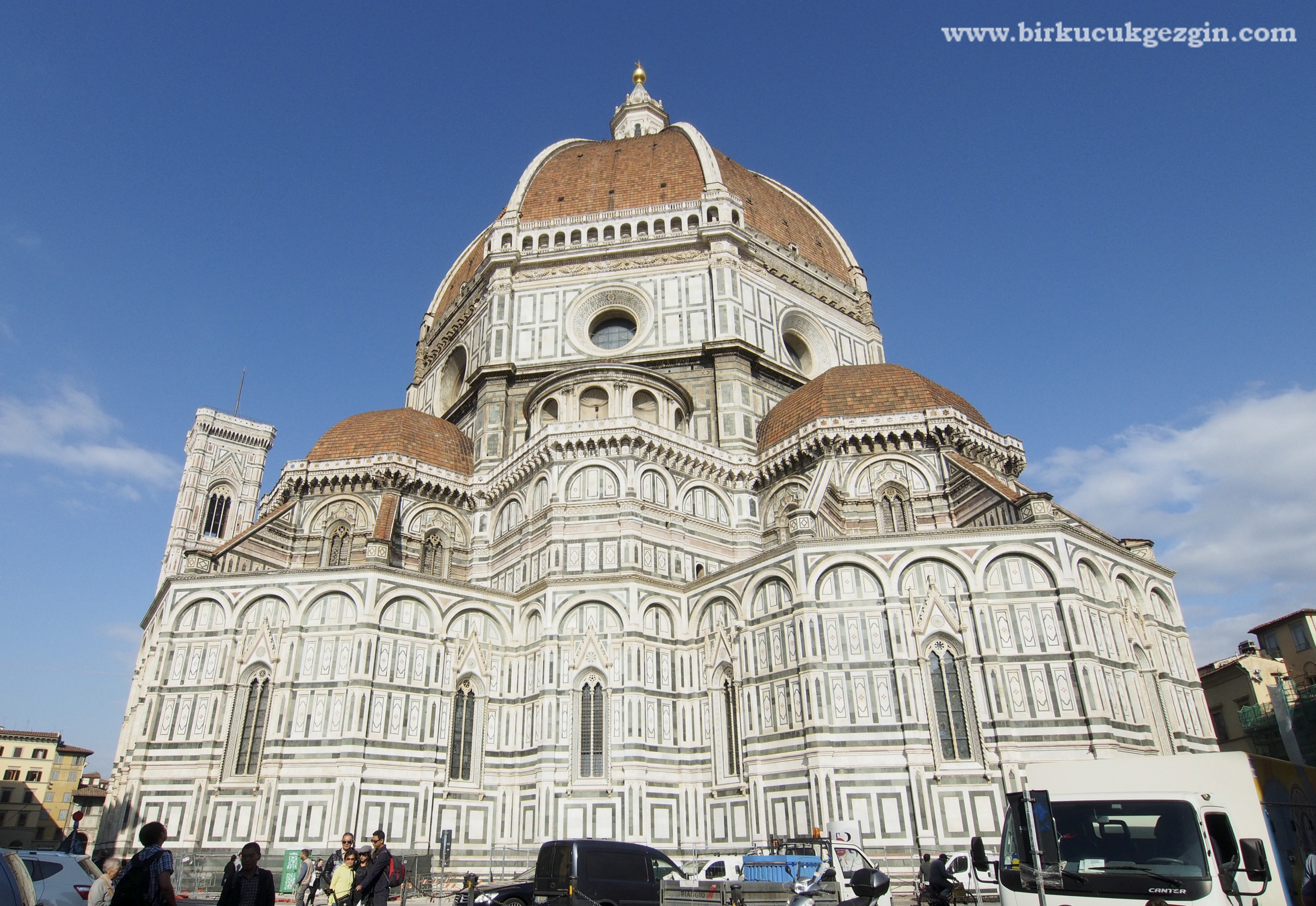 Sokaklarda dolaşırken oldukça büyük ve geniş olan Il Duomo (Santa Marie del Fiore Katedrali) ile sık sık karşılaşıyorsunuz. Katedralin bana ilginç gelen bir geçmişi var. Daha eski ve küçük bir katedralin üzerine inşa edilmeye başlanmış, daha sonra eskisini yıkınca bu kadar büyük bir kubbeyi yapacak bilgileri olmadığı için uzun süre üzerini kapatamamışlar. En sonunda rönesansın önde gelen isimlerinden Brunelleschi tarafından tamamlanmış. Kapısında normalde çok kuyruklar olan Duomo’ya çocuklarla saat 5 civarlarında hiç sıra beklemeden rahatça girdik. Kubbe içindeki freskler dışında içi, dışı kadar etkileyici değildi bence.