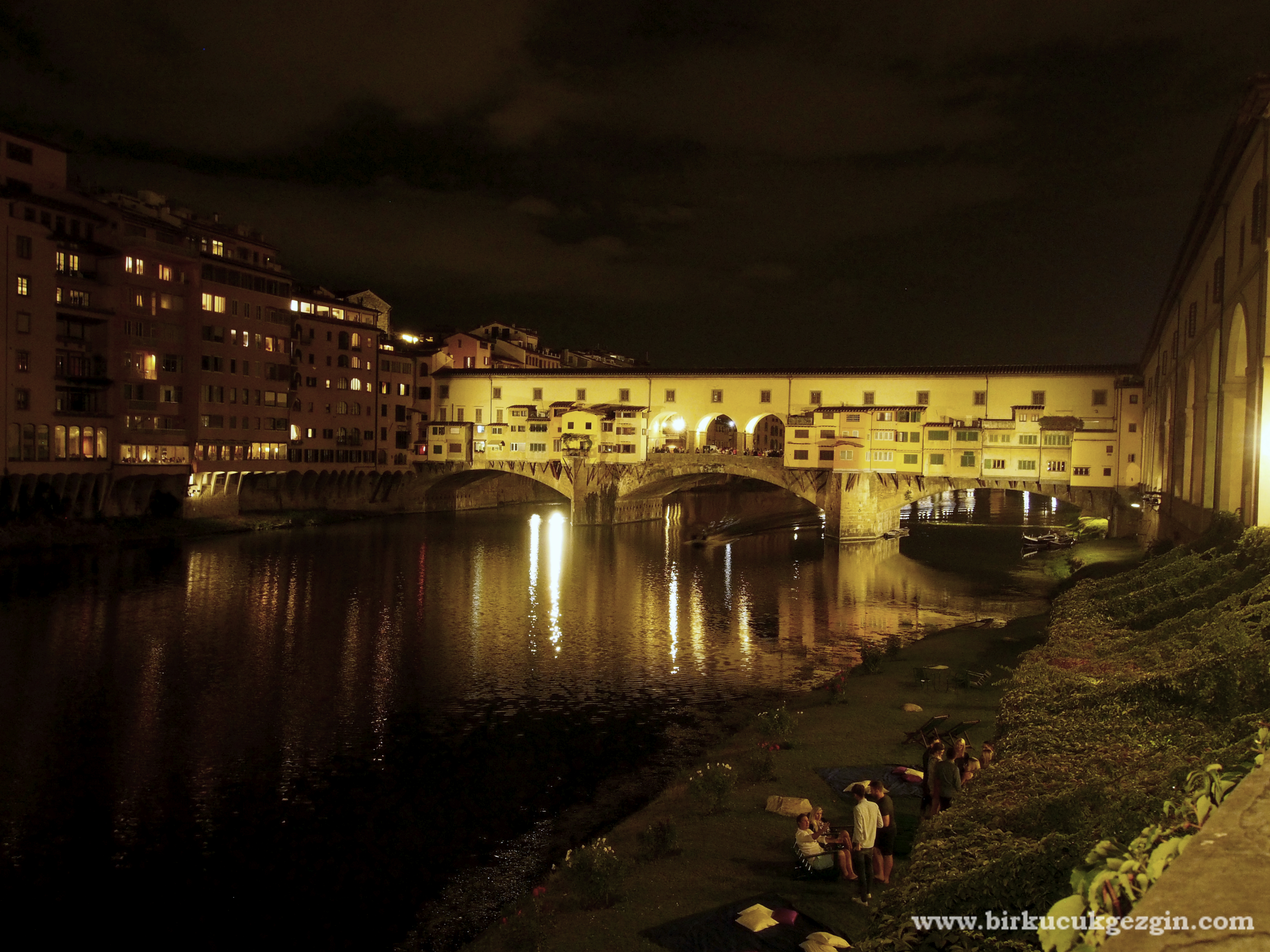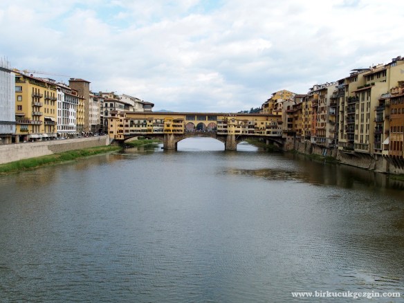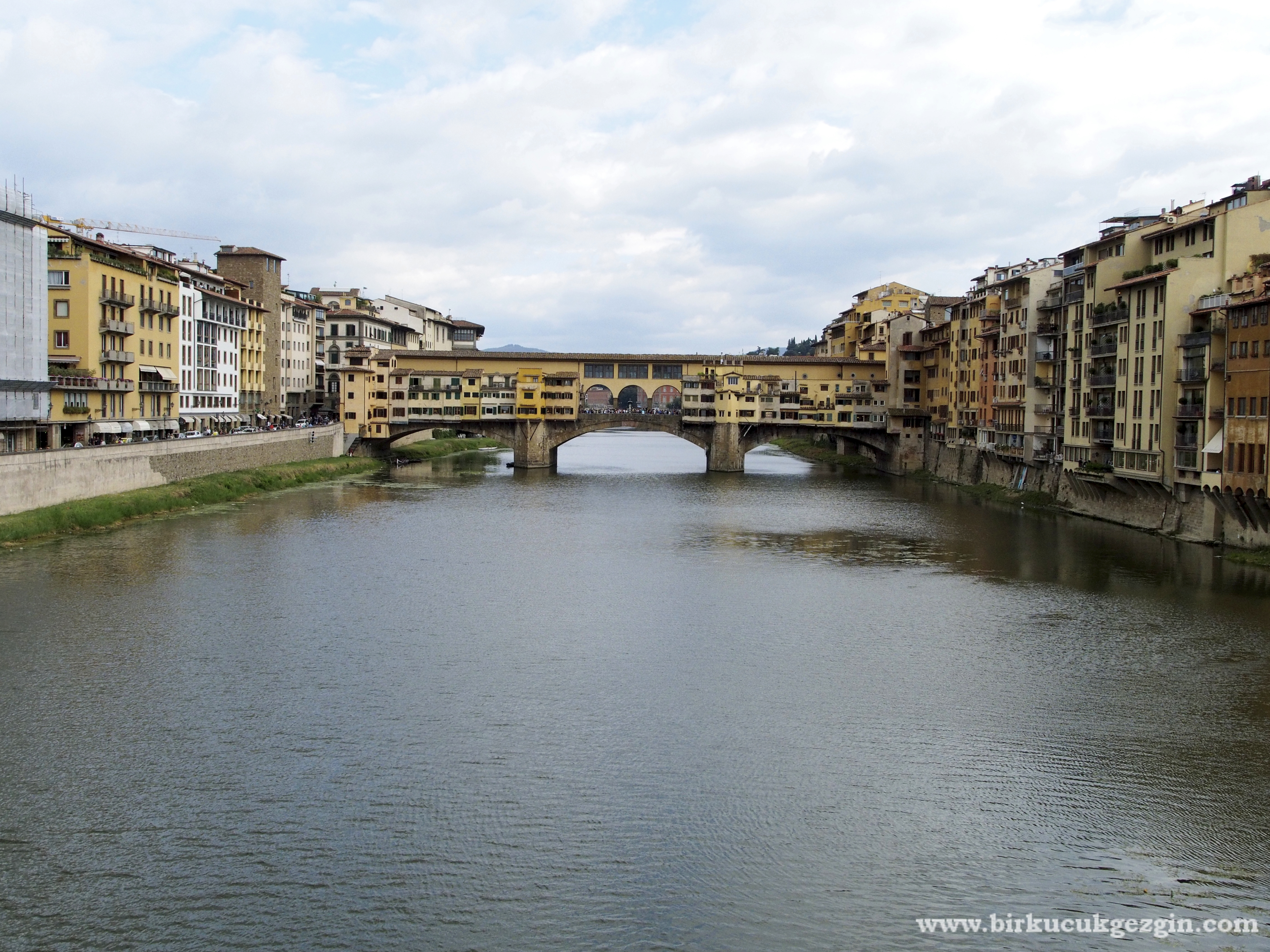 Öğleden sonrası için hedefimiz nehrin karşı yakası olduğu için faytondan Ponte Vecchio‘da (Eski Köprü) inerek karşıya geçtik. Ponte Vecchio üzerinde dükkanlar olan ve kentin simgelerinden biri haline gelmiş eski bir taş köprü. Köprünün kendisi çok şirin ve tabii manzarası ise şahane.
