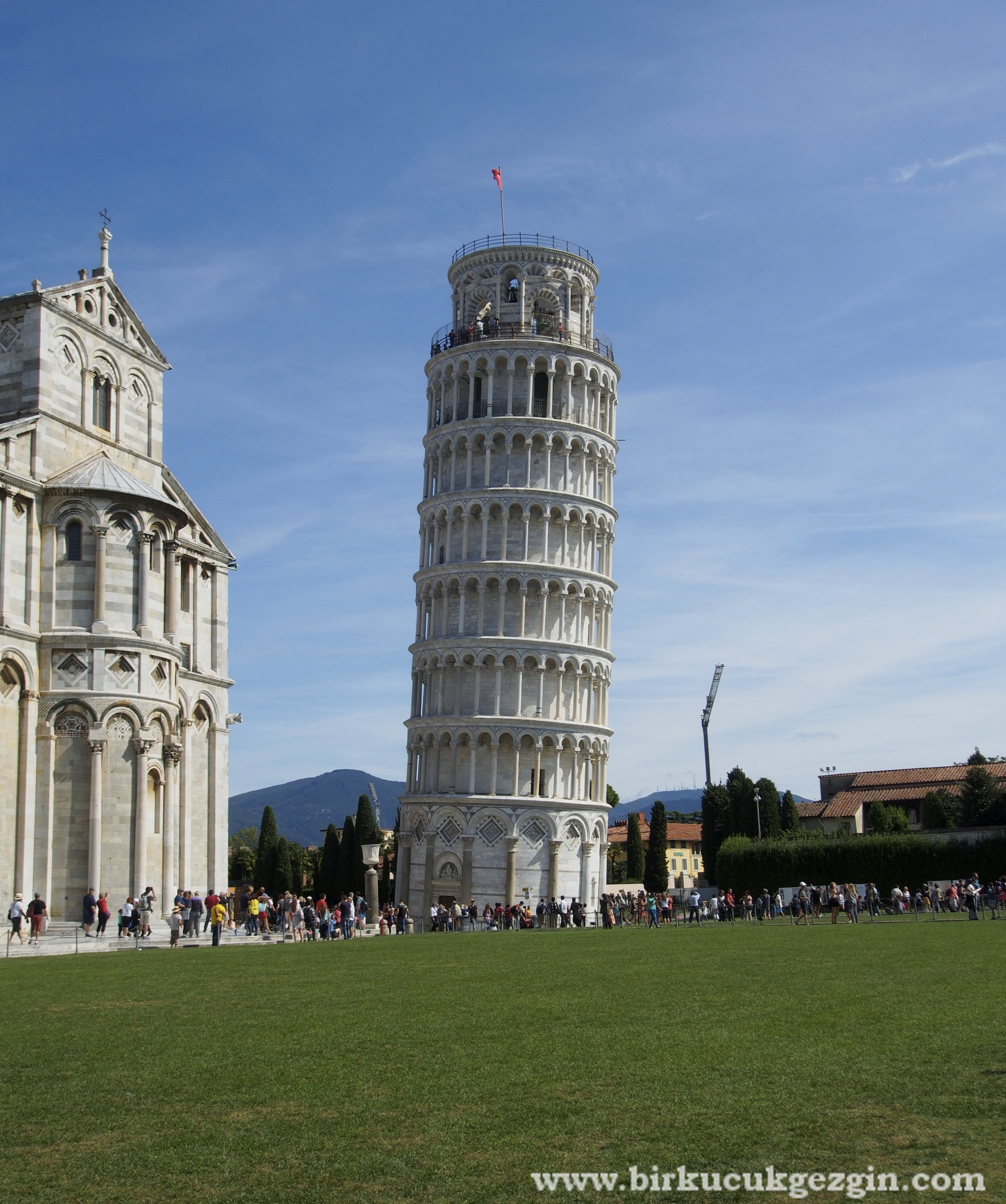 Son gün uçağımız yine yaklaşık 1 saat uzaklıktaki Pisa havaalanından olduğu için ve havaalanı ile Pisa Kulesi arasında sadece 5km olduğu için görmeden geçmeyelim dedik. Arabamızı Pisa Kulesi’ne çok çok yakın bir mesafedeki Garage Cammeo’ya park ettik. Lokasyon olarak burayı çok tavsiye ederim. Bu kez dersimizi aldığımız için valizlerimizi arabada bırakıp gitmedik, onun yerine başlarına içlerimizden birini, Bir Küçük Gezgin’in babasını, nöbetçi diktik. Babamız bizi beklediği için de 15-20 dakikalık bir turla Pisa Kulesi ve çevresini görüp geri döndük. Doğrusu ben daha görkemli bir yapı bekliyordum, diğerlerinin yanında küçücük görünüyordu Pisa Kulesi. Fotoğraflar yanıltıcıymış…