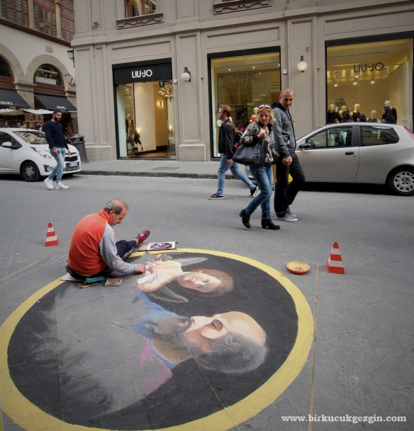 Sokaklarda gezerken sanatın beşiği bir kentte bol bol sokak sanatçısıyla karşılaşmak çocukların çok ilgisini çekti. Orijinal değiller tabii ama bu yere tebeşirle yapılan resimlere ben de bayıldım. Bir de ertesi gün silip tekrar yaptıklarını görünce emeklerine acıdım!