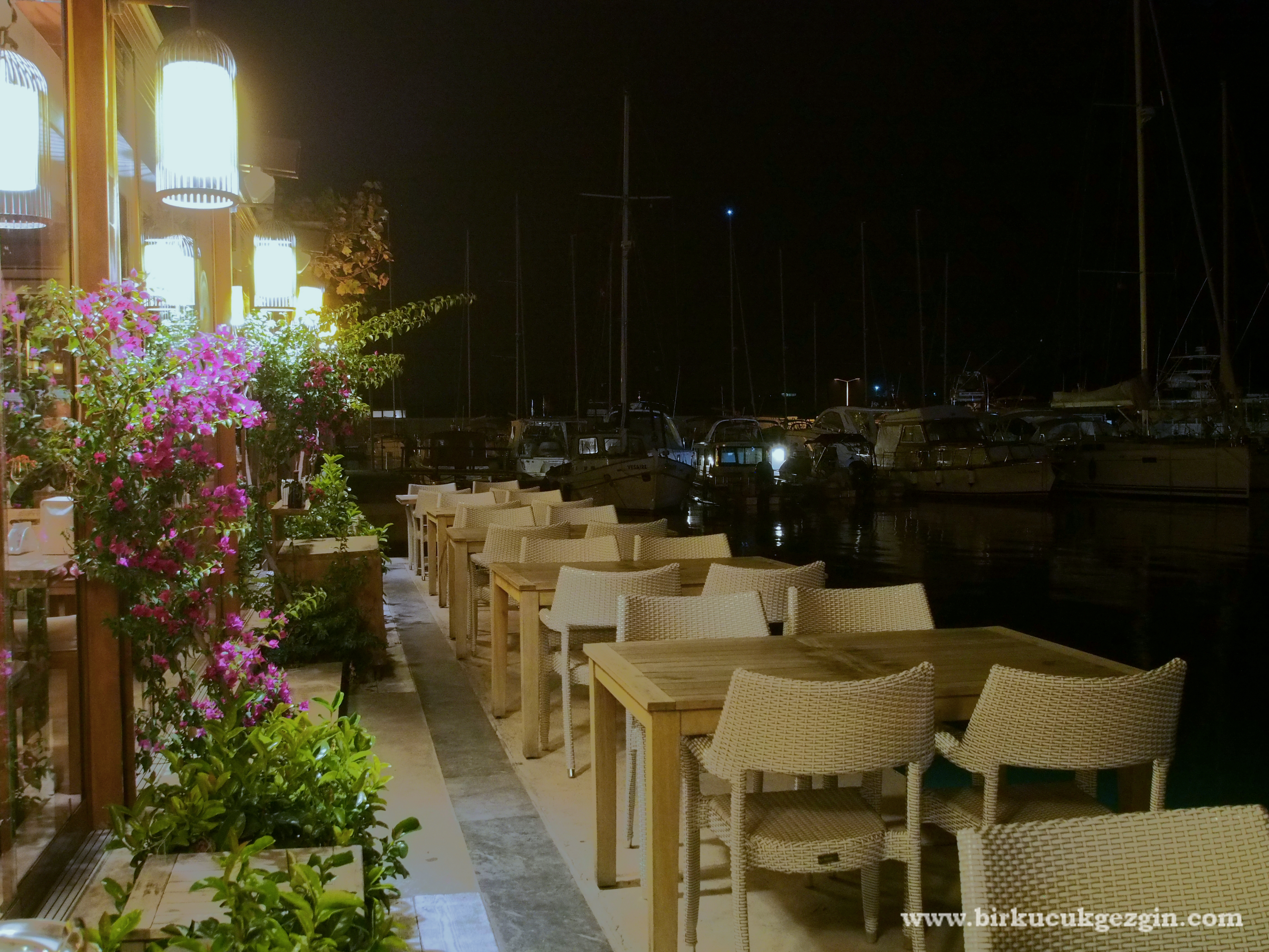 Alaçatı’nın bir de denize bakan yüzü var tabii, ki burası Dünya’nın sayılı rüzgar sörfü lokasyonlarından. Marina, konut ve otel üçlüsünü bir arada barındıran Port Alaçatı projesiyle eskisinden de popüler hale gelmiş durumda. İstanbul ve İzmir’in ünlü mekanları da yerlerini almışlar. Denizin kenarında pek bi keyifliler.. Biz cumartesi akşam yemeğimiz için buradaki Ferdi Baba’yı tercih ettik (ayrıntılarını aşağıda anlattım). Başta rezervasyon gerekmez bu mevsimde diye düşünmüştüm ama gidince “iyi ki de yapmışım” dedim. Port Alaçatı gece sakindi tabii, sezondaki gece hayatı yoktu.