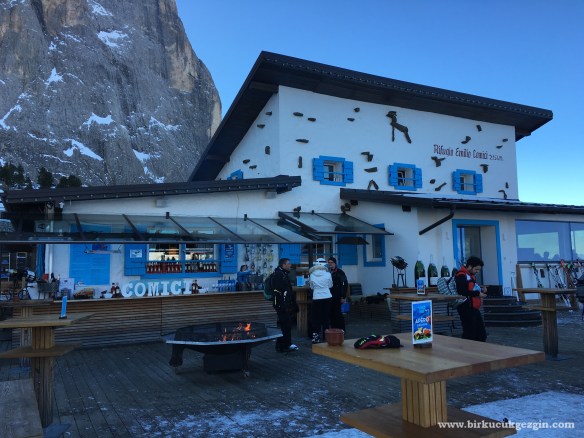 Burası Bir Küçük Gezgin küçükken Val Gardena’ya gittiğimizde bizim mekandı :) Daha önceki kayak yazılarımı okuduysanız biliyorsunuz, küçük bebek ve pusetle gidildiğinde en iyi taktik gondolla tepede bir restorana çıkıp oraya yerleşmek. Nöbetleşe kayıp tekrar aynı noktaya dönmek. Val Gardena’da bunu yapabileceğiniz iki noktadan birisi burası (Diğerine de Ciampinoi gondolu ile ulaşılıyor). İnanılmaz panoramik manzarası olan bir yer… Terası da hava çok soğuk olduğunda tamamen cam duvarlı kapalı alanı da çok keyifli.