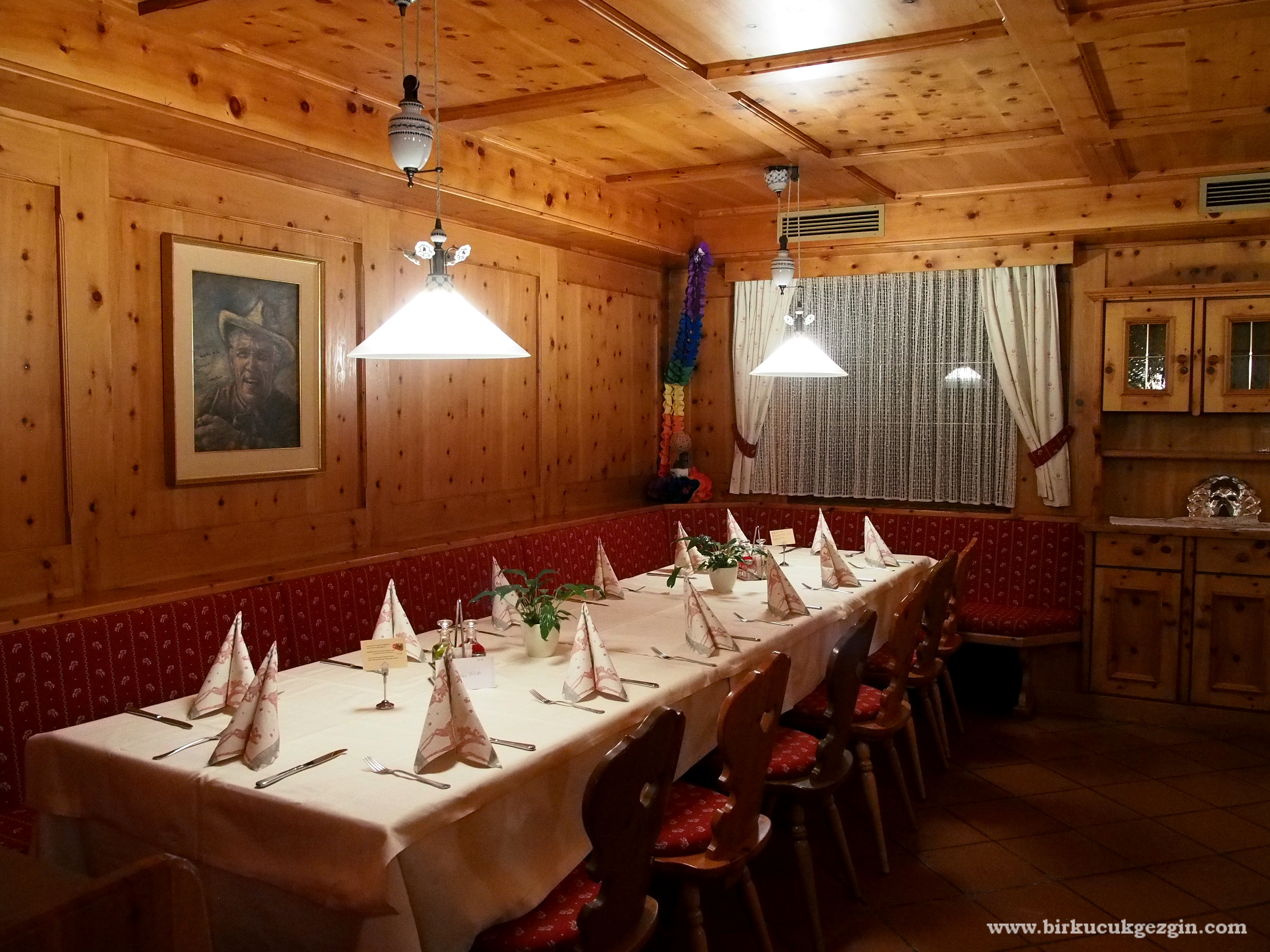Tripavisor’ın değil ama Val Gardena’da denediklermiz arasında gönlümüzün birincisi bu mekan oldu. Hatta geçen sefer keşfetmediğimiz için hayıflandık. Kalabalık grup olunca ve iki akşam yemeğini burada yiyince etlerden, pizzalara hemen hemen herşeyin tadına baktık ve hepimiz de çok beğendik. Üzerinde acı badem kurabiyesi kırıntıları olan balkabağı çorbası ise hem farklı olması hem de lezzetiyle aklımda yer etti.