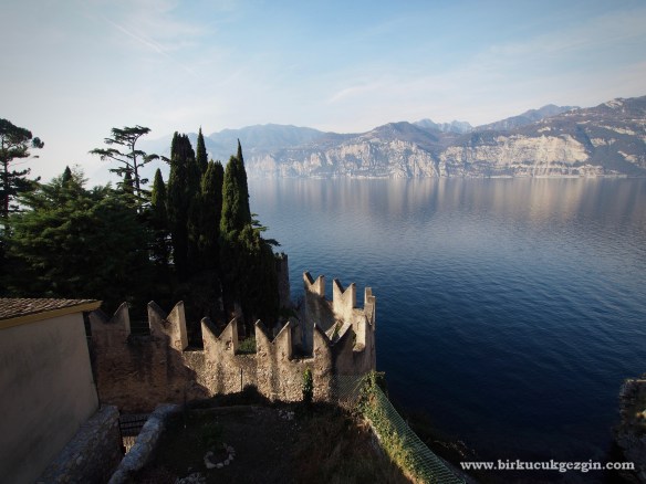 Kasaba tam gölün kenarına yerleşmiş fotografik Scaligero Kalesi ile karakterize olmuş. Yukarıdaki videoda da Malcesine’ye yaklaşırken de dikkati ilk bu kalenin çektiğini görebiliyorsunuz. Yapım tarihi kesin olmayan bu kale şu an müze olarak kullanılıyor ve aynı zamanda düğün organizasyonları da yapılabiliyor. Kış sezonunda sadece haftasonları ziyarete açık olduğu için biz içini gezemedik, dışarıdan seyretmekle yetindik. Aşağıdaki fotoğraf da kaleden görülen manzara…
