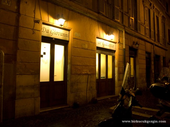 Campo de Fiori Meydanı’nın yakınlarındaki küçük ve şirin Farnese Meydanı’nda bulunan Ar Galletto daha çok Roma’da yaşayanların tercih ettiği eski bir restoran. Bir akşam yemeğimizi burada yemiştik ve özellikle makarnalarını çok sevmiştik. Listeye dahil ediyorum çünkü tabii ki yakın zamanda giden arkadaşlarım da çok memnun kaldılar.