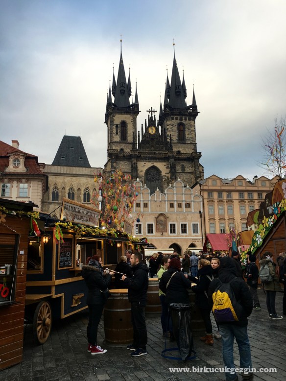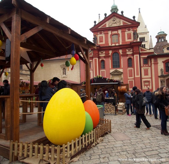 Prag turist odaklı bir şehir olduğu için Noel ve Paskalya pazarları da çok kapsamlı oluyor. Noel Pazarının ününü önceden duymuştum. Biz gittiğimizde de Paskalya pazarları kurulmuştu. Hatta biz biraz da özellikle bu zamana denk getirdik. Daha da kalabalık olacağı için Paskalya haftasonuna denk getirmedik ama bir hafta önce gittiğimiz için pazarların ortamını da yaşama fırsatımız oldu. Eski Kent Meydanı’ndaki pazar tabii ki de en büyüğüydü ama Kale’nin ana meydanında ve diğer küçük meydanlarda da standlar kurulmuştu.