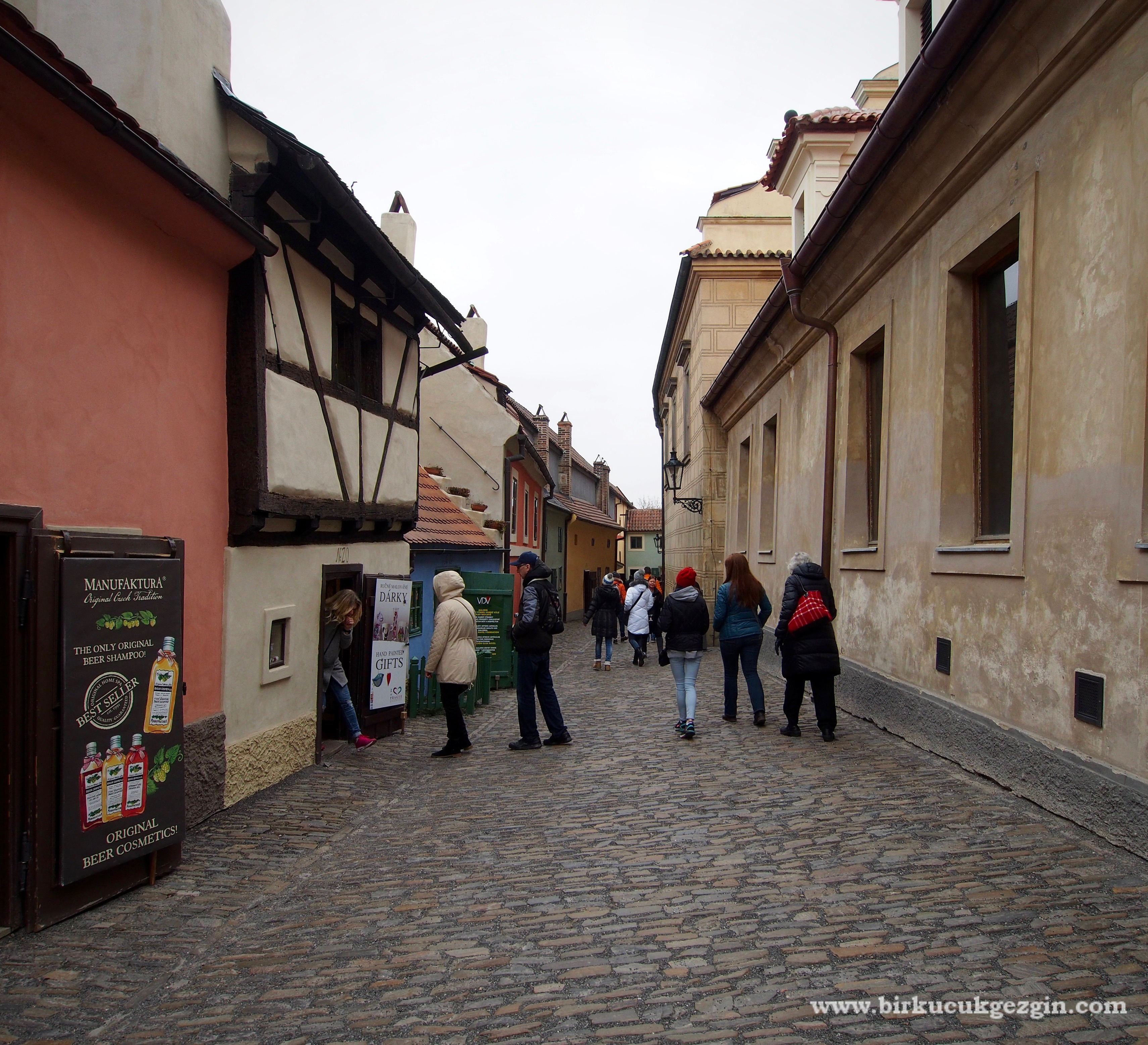 Kale’nin içerisinde değinmeden geçemeyeceğim bir yer daha var: Altın Yol. Çok şirin ve minik evlerden oluşan minik bir sokak burası. İsmi eskiden burada bulunan kuyumcu dükkanlarından geliyor. Şu anda turistik eşya satan dükkanlar bulunuyor. Bazıları ise geçmişteki yaşamı yansıtacak şekilde müze olarak düzenlenmiş. 22 no’lu mavi evde ise Kafka’nınmış. Yalnız şunu belirtmek isterim ki, gitmeden önce okuduklarımdan ben daha hareketli ve daha uzun bir sokak hayal etmiştim. O açıdan biraz hayal kırıklığı oldu. Ama yine de evler o sevimliydi. Gezmek isterseniz biletle girmeniz gerekiyor aklınızda olsun.