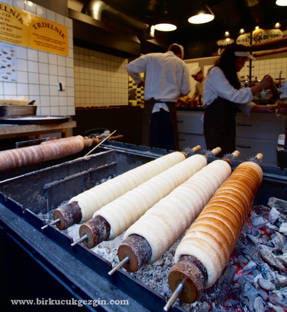 Kendi tecrübelerimize dayanarak hazırladığım mini Prag yeme-içme rehberine geçmeden önce son olarak sokaklarda adım başı rastlanılan ve tadı damağımda kalan tatlılarından bahsetmek istiyorum. Trdelnik adı verilen bu tatlı, hazırlanan hamurun silindir şeklinde kalın çubuklara geçirilerek kömür üzerinde pişirilmesiyle yapılıyor. Geleneksel olarak üzerine şeker serpilerek yeniliyor ama mesela ben Nutella’lısını denedim ve bayıldım. Sıcak sıcak çok güzeldi! Mutlaka denemelisiniz!