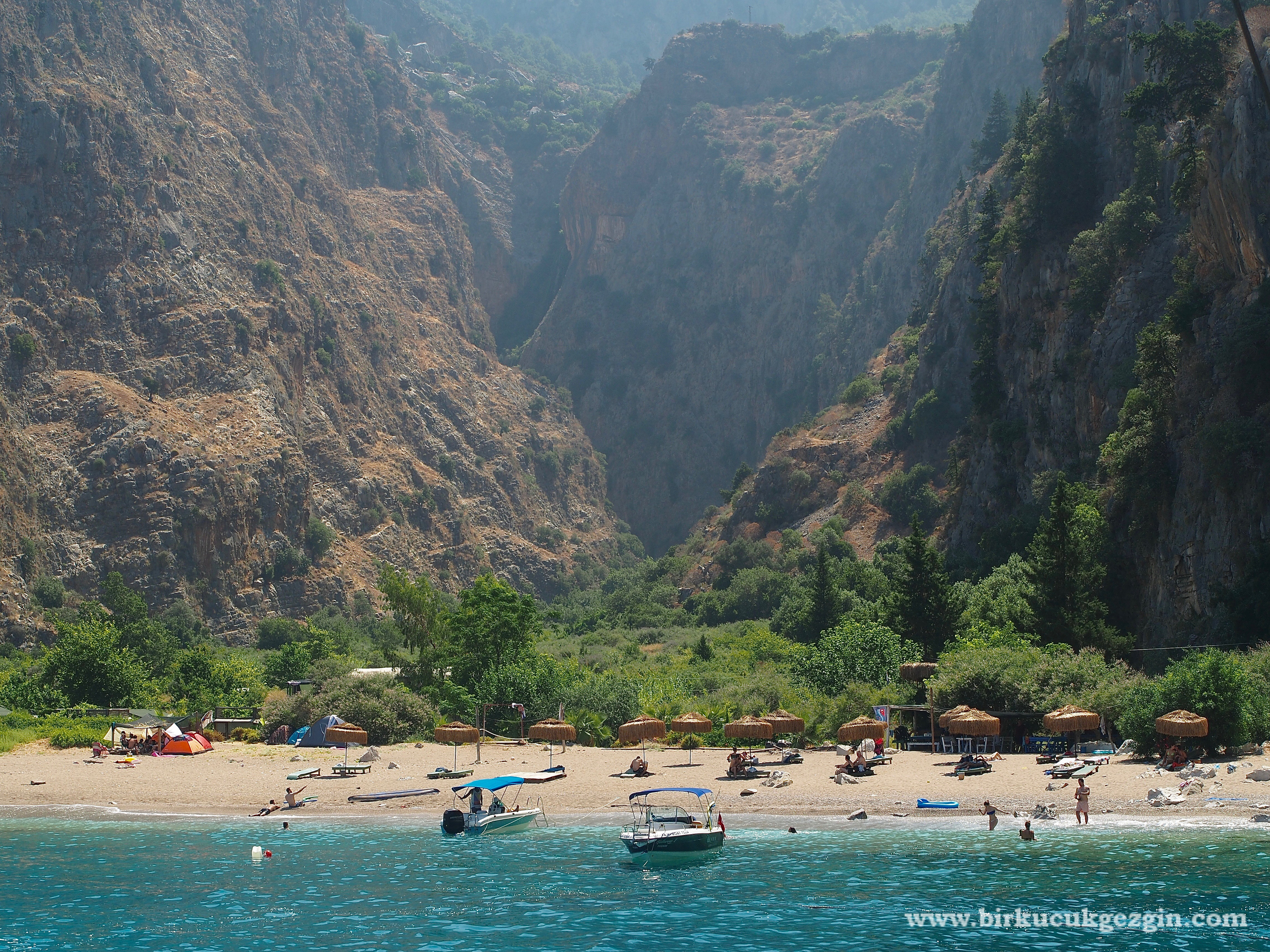 Ben uzun yıllar önce günlük tekne gezisiyle gelmiş ve kanyonda yürüyüş yapmıştım, fakat bu sefer günün en sıcak saatlerinde geldiğimiz için sıcakta tekneden inmeyi gözümüz pek kesmedi. Gündüz saatlerinde tekne yoğunluğu da fazla olduğu için biz uzun süre durmadık ama eğer bu tarz tatilleri seviyorsanız Türkiye’nin en iyi kamp yerlerinden biri olan Kelebekler Vadisi dinginliği, doğallığı ve doğa ile bütünleşmiş kendine özgü hayatı ile mutlaka gitmeniz gereken bir yer…