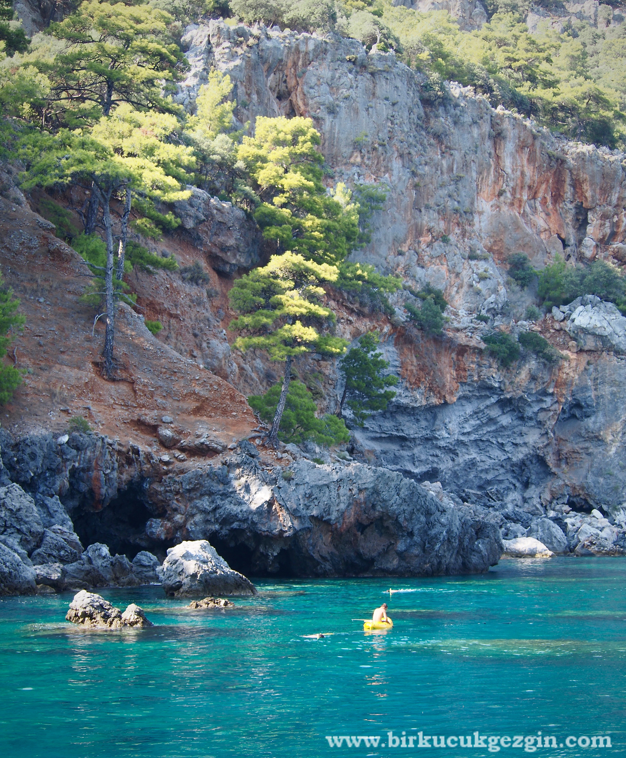 Kaptanımız Fethiye kalabalığından hoşlanmadığımızı görünce üçüncü günümüzün sabahında bizi erkenden daha kuzeye Sarıgerme yakınlarındaki Dişibilmez Burnu’na götürdü. 2-3 saat süren yolculuk boyunca uyuduk ve uyandığımızda telefonların çekmediği, bizden başka sadece bir teknenin olduğu muhteşem bir koyla karşılaştık! Deniz inanılmaz güzeldi ve ayrıca da kanoyla gidip keşfedebileceğimiz ufak mağaralar bizi bekliyordu.