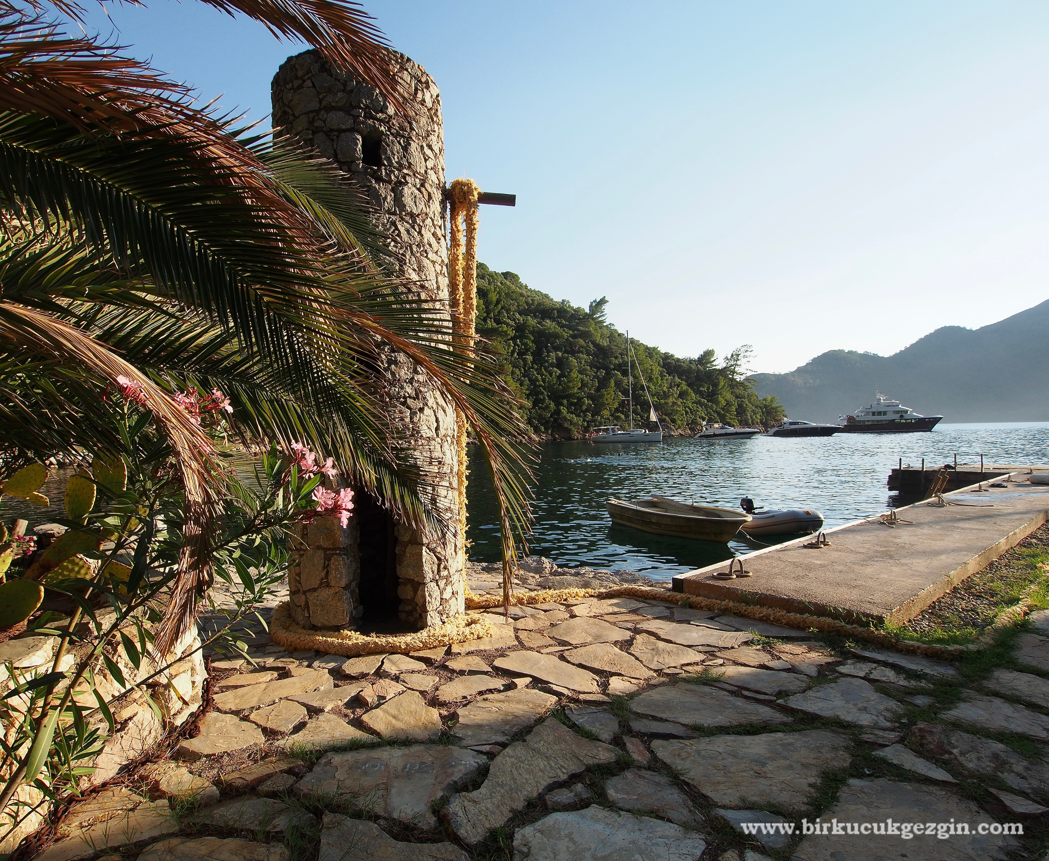 Gemile Adası ki aynı zamanda Aya Nikola Adası da deniliyor 5. yy civarlarında medeniyetin kurulduğu ve şu anda müze olan eski bir yerleşim yeri. Adanın yüksek noktalarında birçok kilisenin bulunması nedeniyle önemli bir dini merkez olduğu ve Noel Baba olma ihtimali de olan bir Aziz Nikolas’ın bir süre bu adada yaşadığı düşünülüyor. Ben sabah erkenden kalkıp hava çok sıcak olmadan Ada’ya çıkıp gezme fırsatı buldum. O sırada daha henüz bekçi dahil kimse gelmediği için tek başıma dolaştım. Ada’dan manzaranın nefes kesici olduğunu da belirtmeliyim.