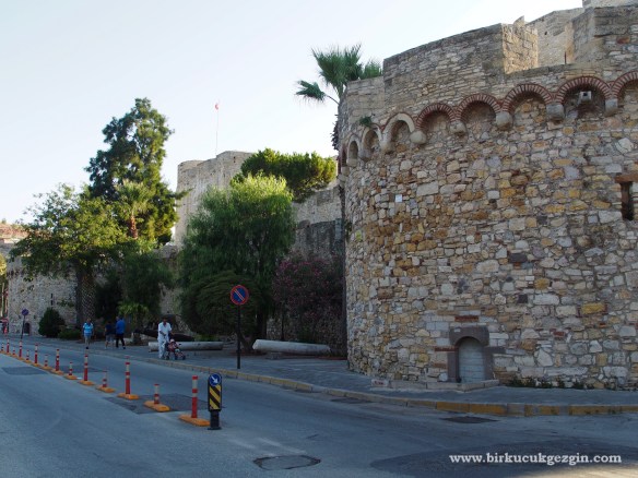 Çeşme Kalesi 1508 yılında inşa edilmiş ve bütünüyle ayakta duran, heybetli bir yapı. Şu anda da arkeoloji müzesine ev sahipliği yapıyor. Müzedeki eserler Ankara’daki Anadolu Medeniyetleri Müzesi’nden sonra biraz cılız kaldı bizim için (yazısı burada) ama Kale’yi gezmek çocuklar için eğlenceli oldu. Surların üzerinden Marina ve körfez manzarası ise nefes kesiciydi.
