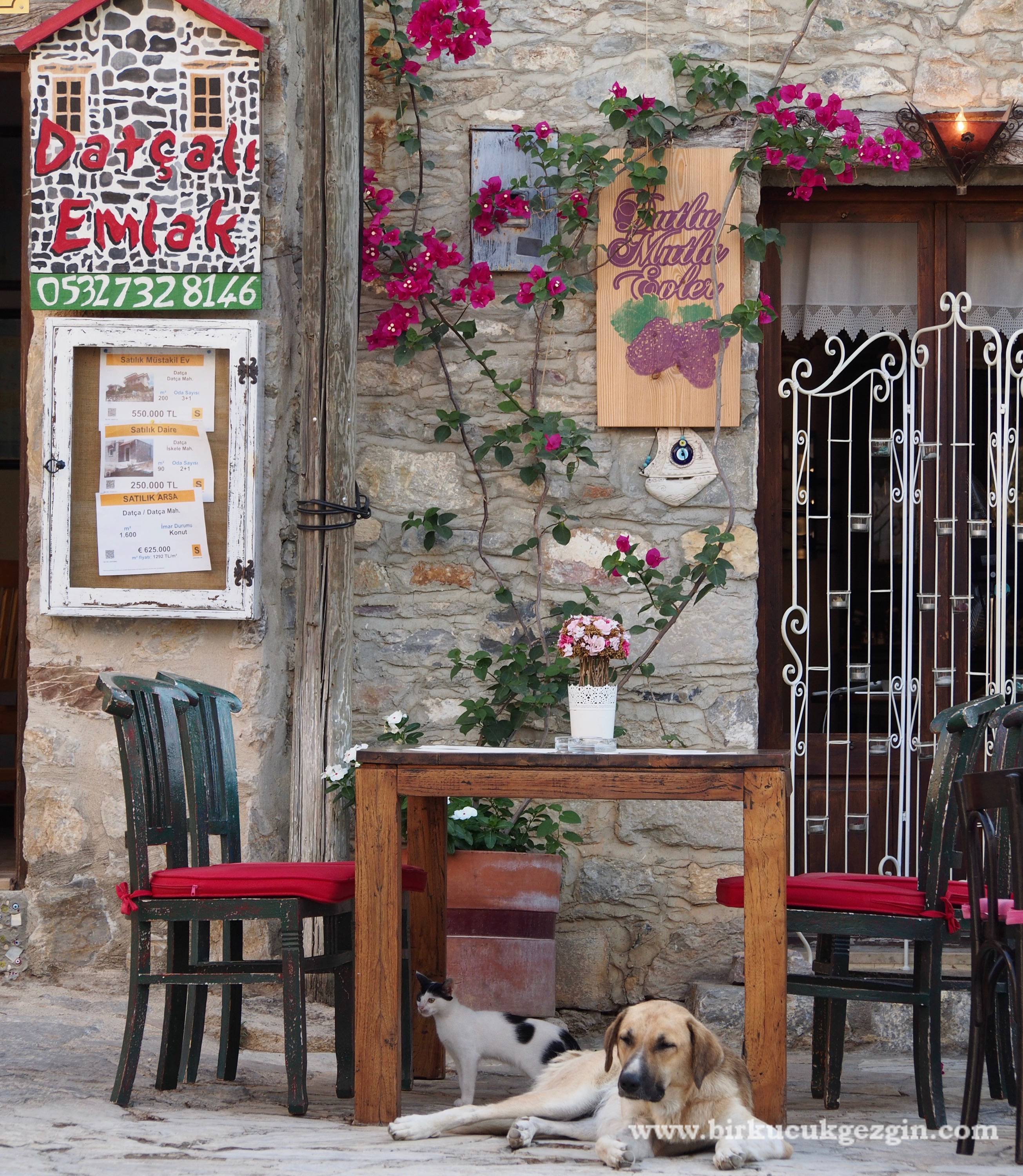 Eski Datça ise yine sokaklarında gezmeye doyamadığım bir yer. Bu yaz bir kez sabah erkenden tek başıma gidip bol bol fotoğraf çektiğim keyifli bir gezi gerçekleştirdim. Bir kez de akşam çoluk çocuk gittik. Akşam gittiğimizde de yeni bir yer deneyimlemek adına Datça Sofra’sında yemek yedik. Aslında güvenebildiğim bir kaynak bulamamıştım internette ama olan yorumlar gayet iyiydi. Çok sert yorumlar yazmaktan hoşlanmıyorum ama bütün keyfimizi kaçıran bir yemek oldu. Sözde ünlü bademli köftesi de hikaye… Bence uzak durun! Şimdi bu tatsız konuyu Eski Datça fotoğraflarına dalarak unutalım isterseniz..