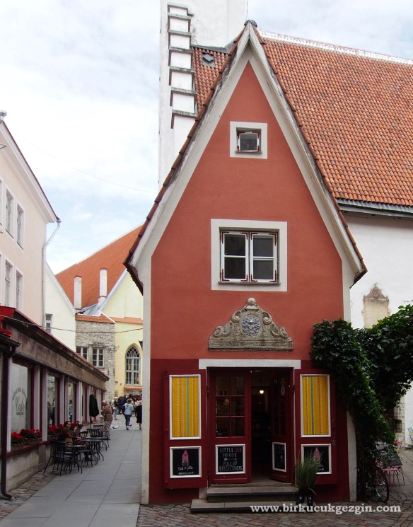 Tallinn’in Eski Şehri’nin bir özelliği bana ilginç ve aslında güzel geldi. Genelde en turistik yerlerde en lüks ya da en fazla bilinen markaların da mağazaları olur ya, onlar Tallinn’in Eski Şehir Merkezi’nde yoklar. Soğuk memleket olduğu için genelde AVM’lerdeler. Eski Şehir Merkezindekiler ise şirin, minik, tasarım veya hediyelik ürünler satan yerler. Aşağıdaki fotoğrafta görebileceğiniz küçük kırmızı dükkan gibi.